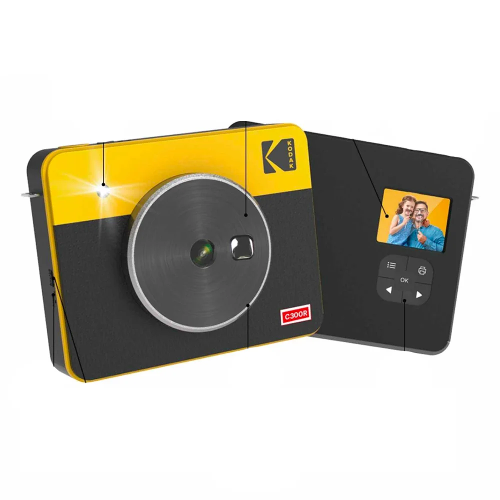 ¿Por qué pagar más para imprimir? Imprimir nunca ha sido tan fácil con la cámara digital instantánea Kodak Mini Shot 3 Retro. La película fotográfica cuesta mucho menos que otras marcas. Combina tu Kodak Mini Shot 3 Retro con los estuches compatibles, disponibles en amarillo, negro y gris.